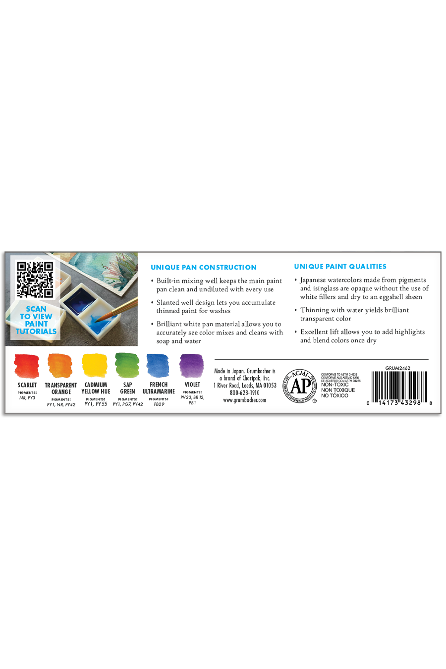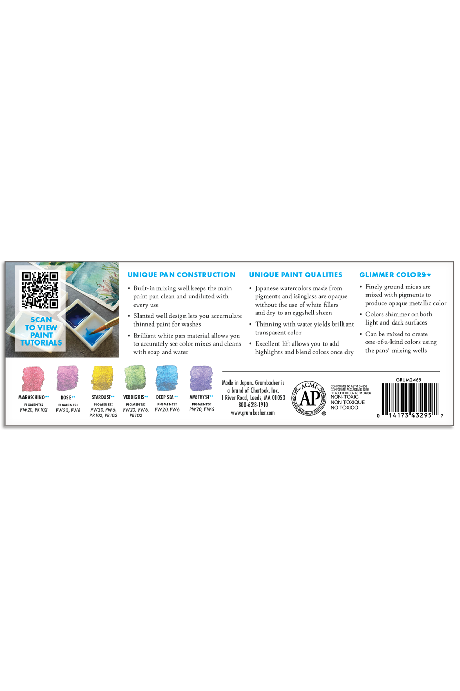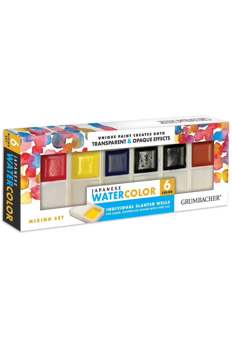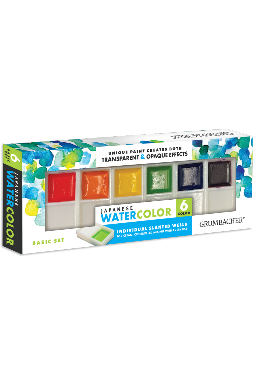 Grumbacher poured Japanese watercolor pans are made from a time-honored Eastern formula, meticulously crafted to produce brilliant, opaque bodycolors. When used in a thick, creamy consistency, the color has richness and depth that dries to an eggshell sheen, setting it apart from gouache. With a simple adjustment of water, you can achieve equally stunning yet translucent watercolor effects by thinning the paints in the pan’s mixing well.