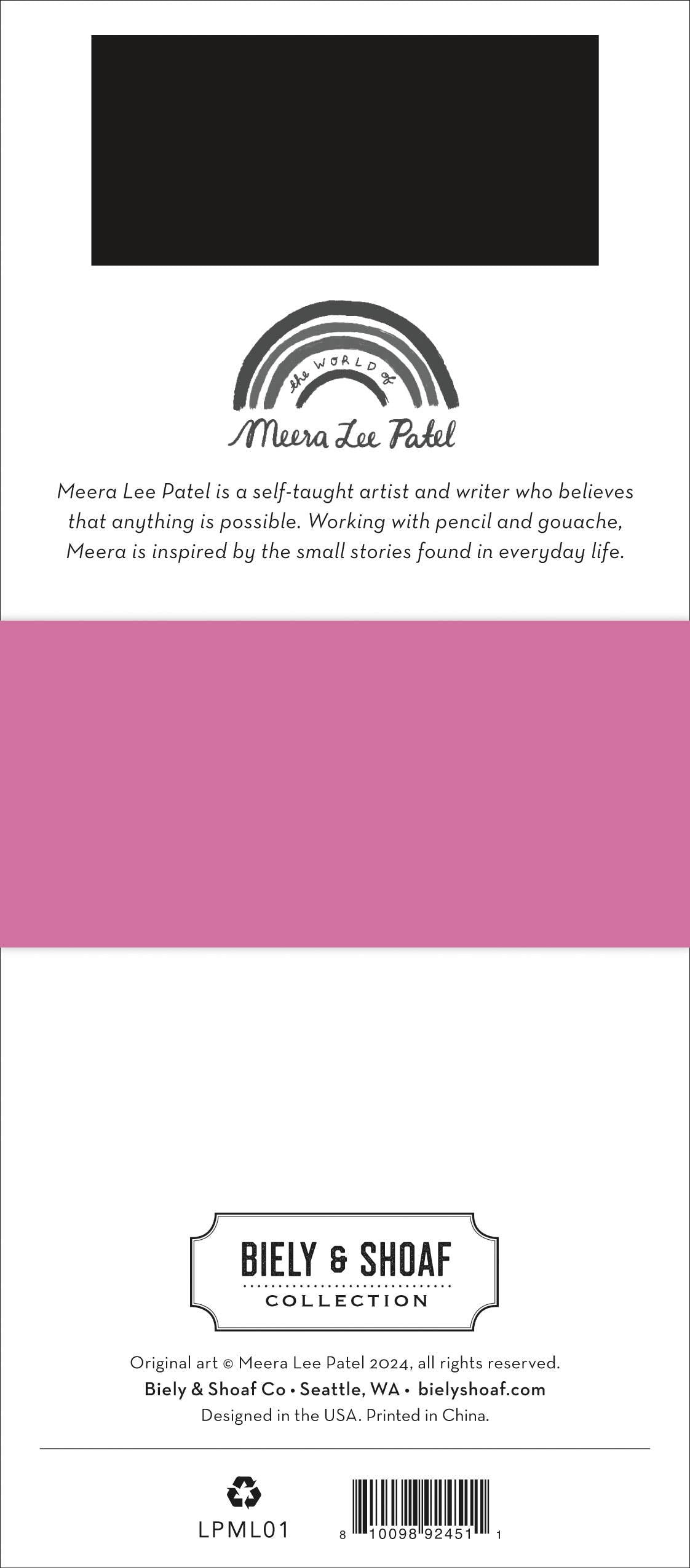 About The Artist: Meera Lee Patel is a self-taught writer and artist who believes that anything is possible. She is the author of My Friend Fear: Finding Magic in the Unknown, a beautiful meditation on fear and how it can help guide us to become who we really are. She is also the author of two journals for self-exploration, Start Where You Are and Made Out of Stars.