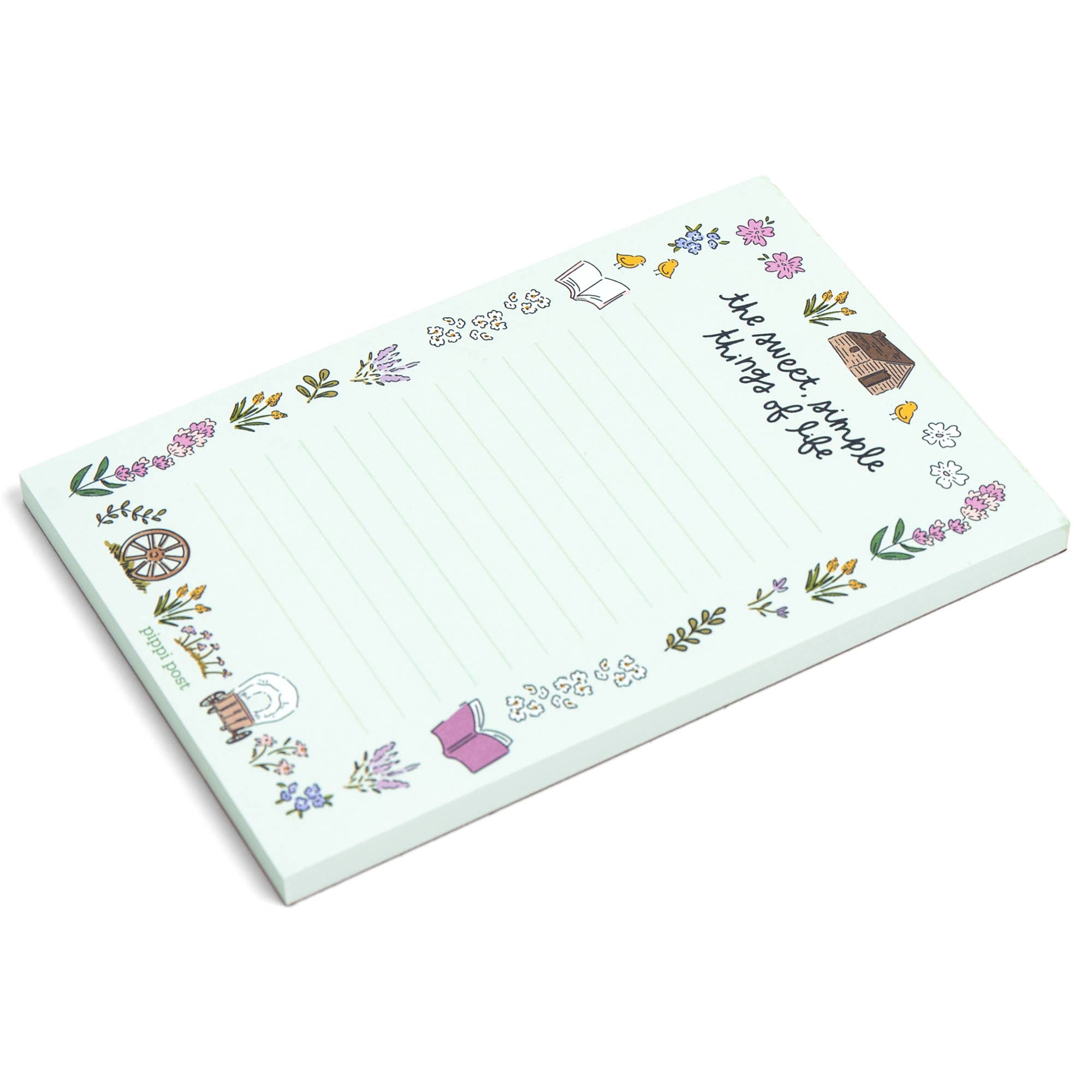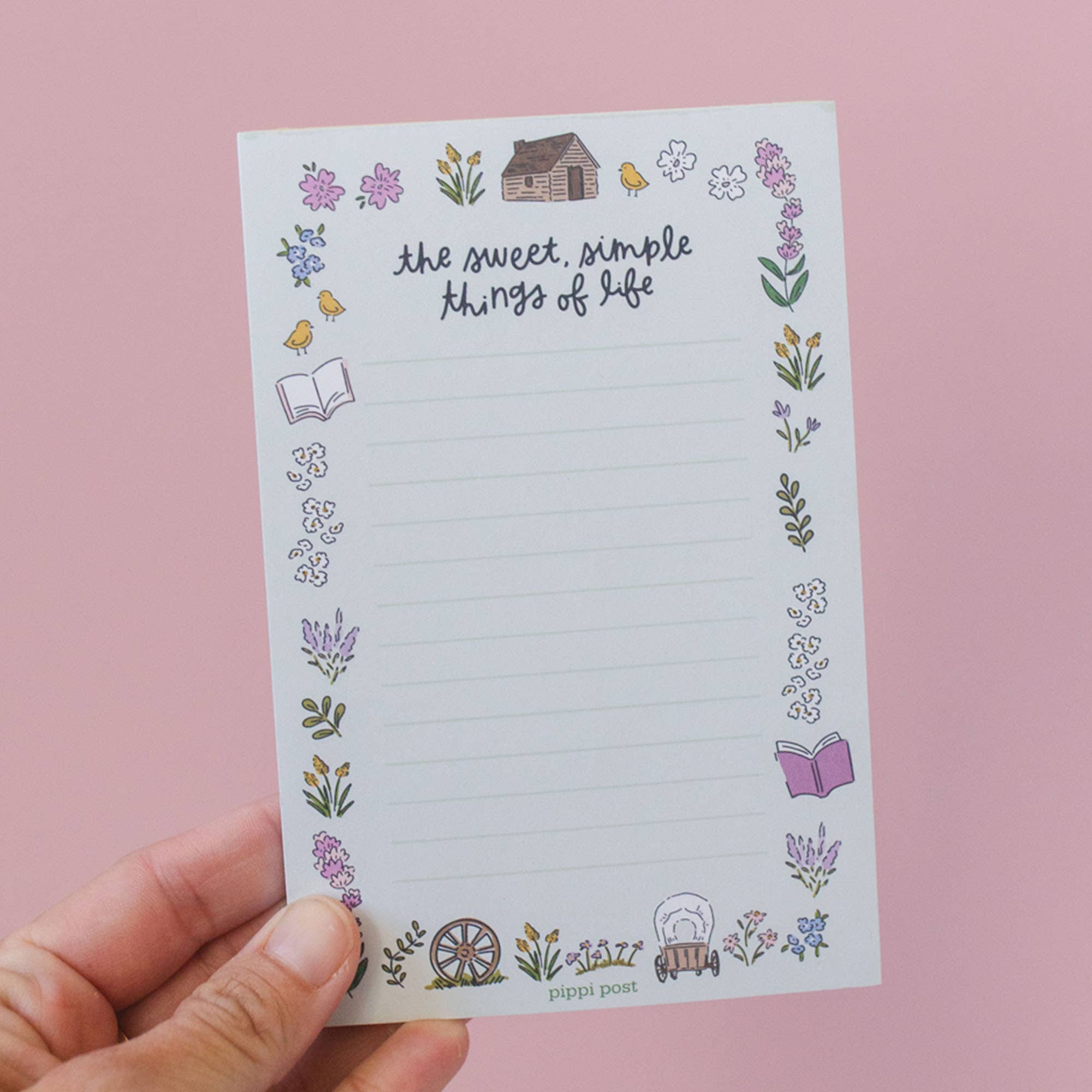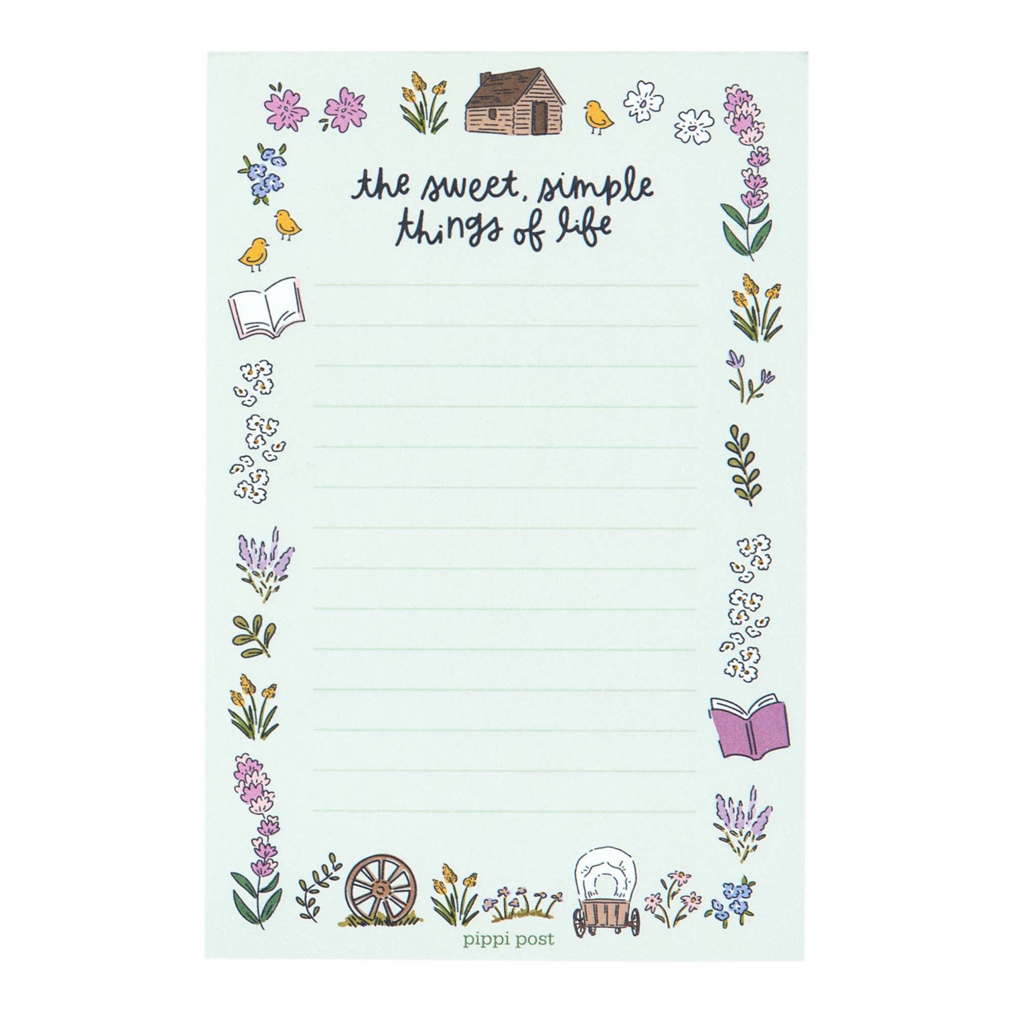 Capture your thoughts with a touch of prairie charm! This 4x6 notepad features the quote, “The sweet, simple things of life,” surrounded by hand-drawn illustrations of Laura Ingalls Wilder's homestead life, including a cozy log cabin, wagon wheels, florals, and open books. Perfect for daily lists, journaling, or gifting to Little House on the Prairie fans, book lovers, and anyone who cherishes the beauty of simple moments.